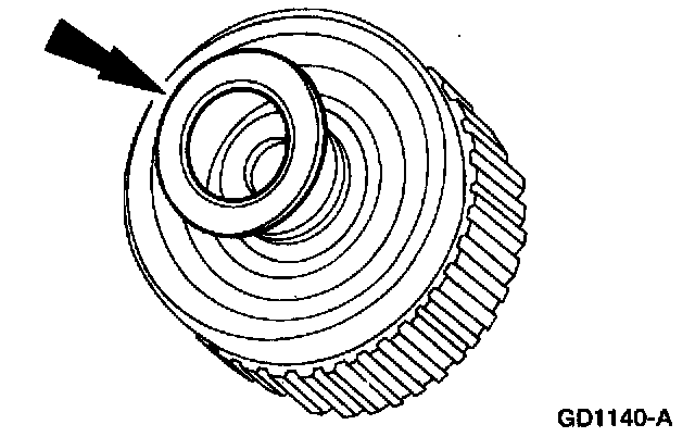 2. Install the clutch piston outer seal so that when the piston is installed the sealing lip points toward the bottom of the cylinder.