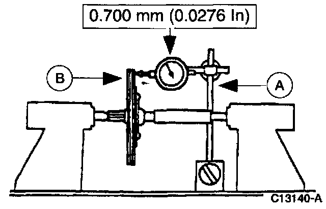 4. Use (A) Dial Indicator/Magnetic Base to inspect the (B) clutch disc runout.