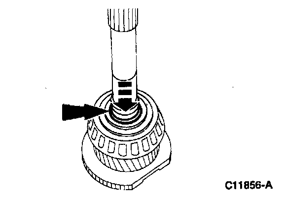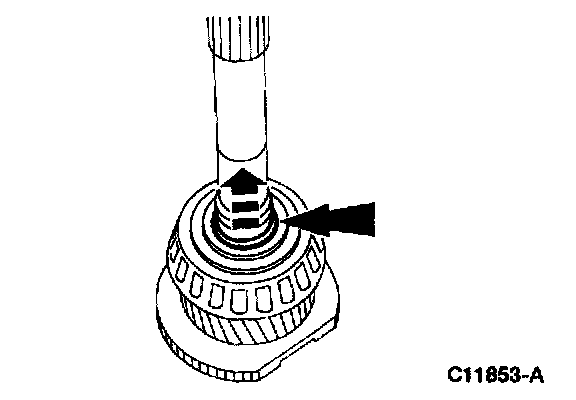 ^ A click should be felt as the front bearing oil scoop ring notches align with the input shaft oil holes.