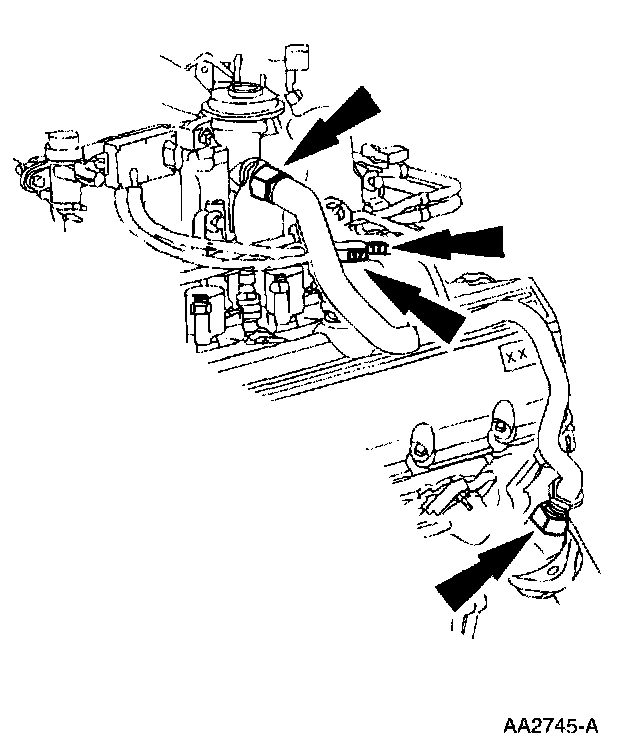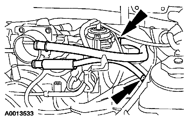 10. Disconnect the Exhaust Gas Recirculation (EGR) valve vacuum line and the main vacuum harness.