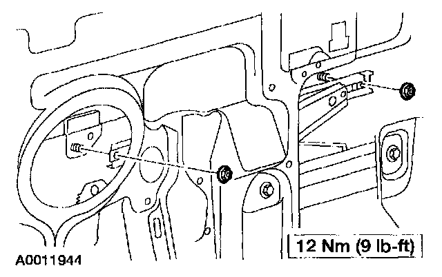 4. Remove the window glass to regulator nuts.