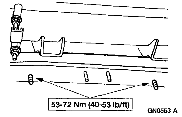 3. Remove the heat shield to transmission support crossmember bolts.