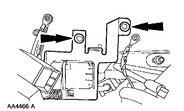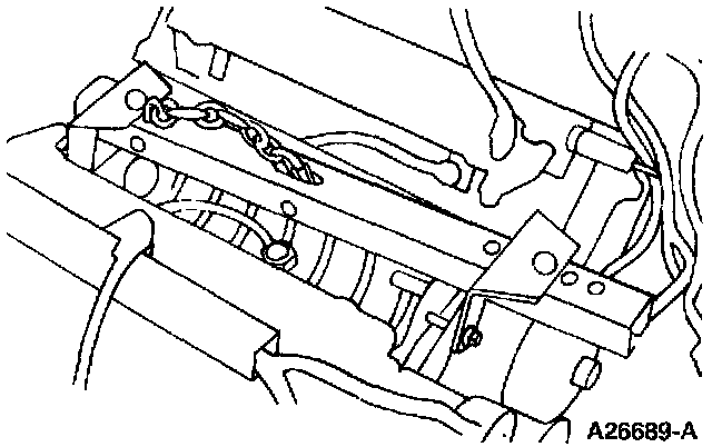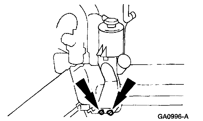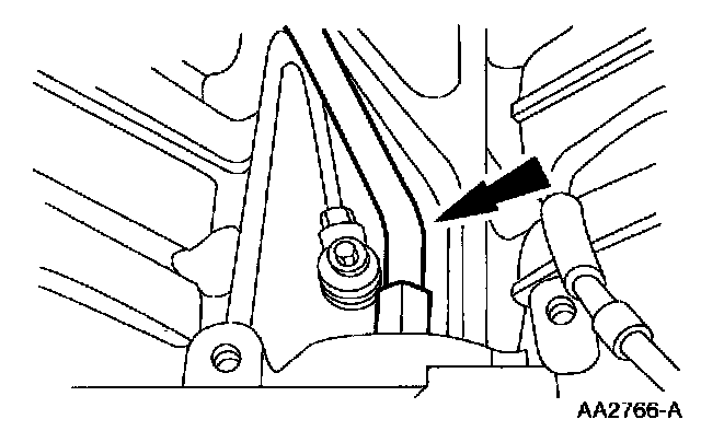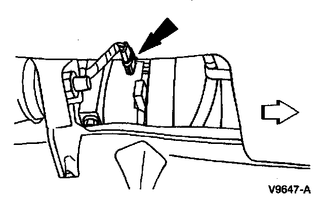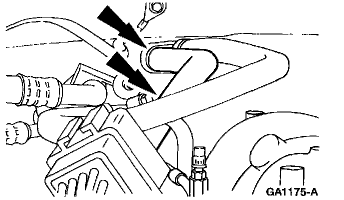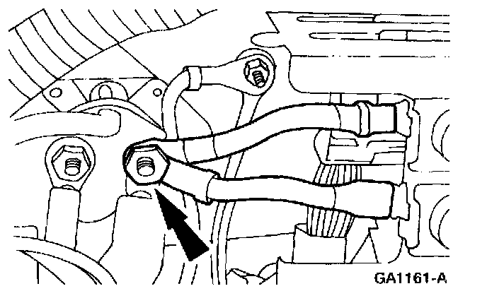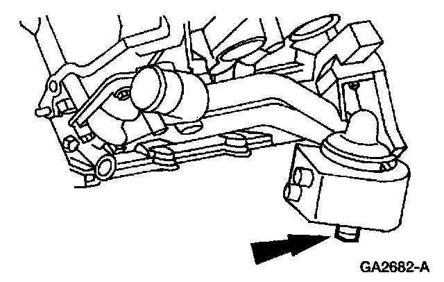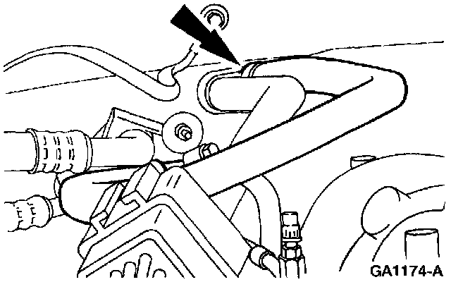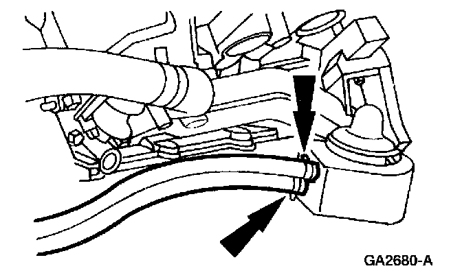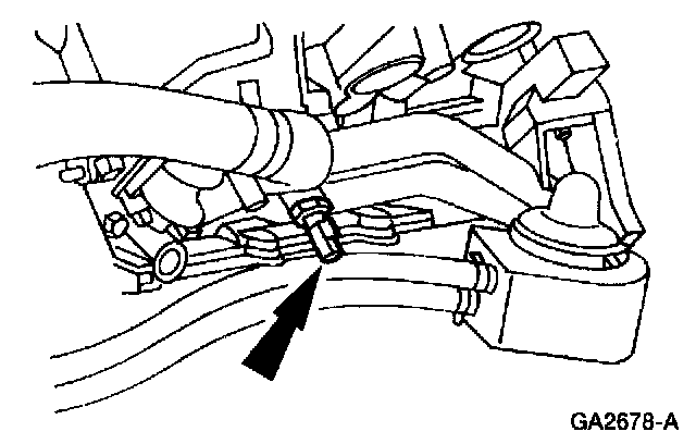 21. Remove the transmission fluid cooler hose from the block-mounted clip.