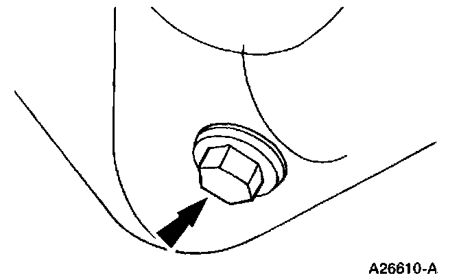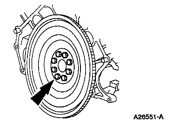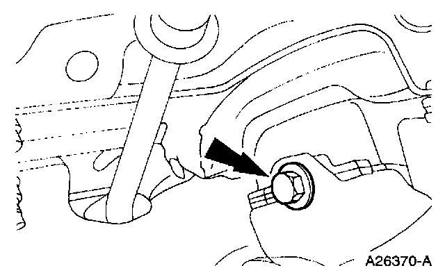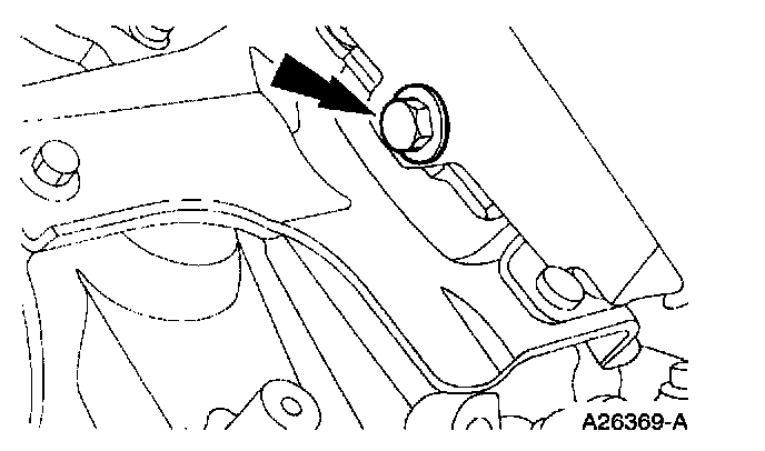 22. Remove the transmission inspection cover, torque converter bolts and transmission-to-engine block bolts.
