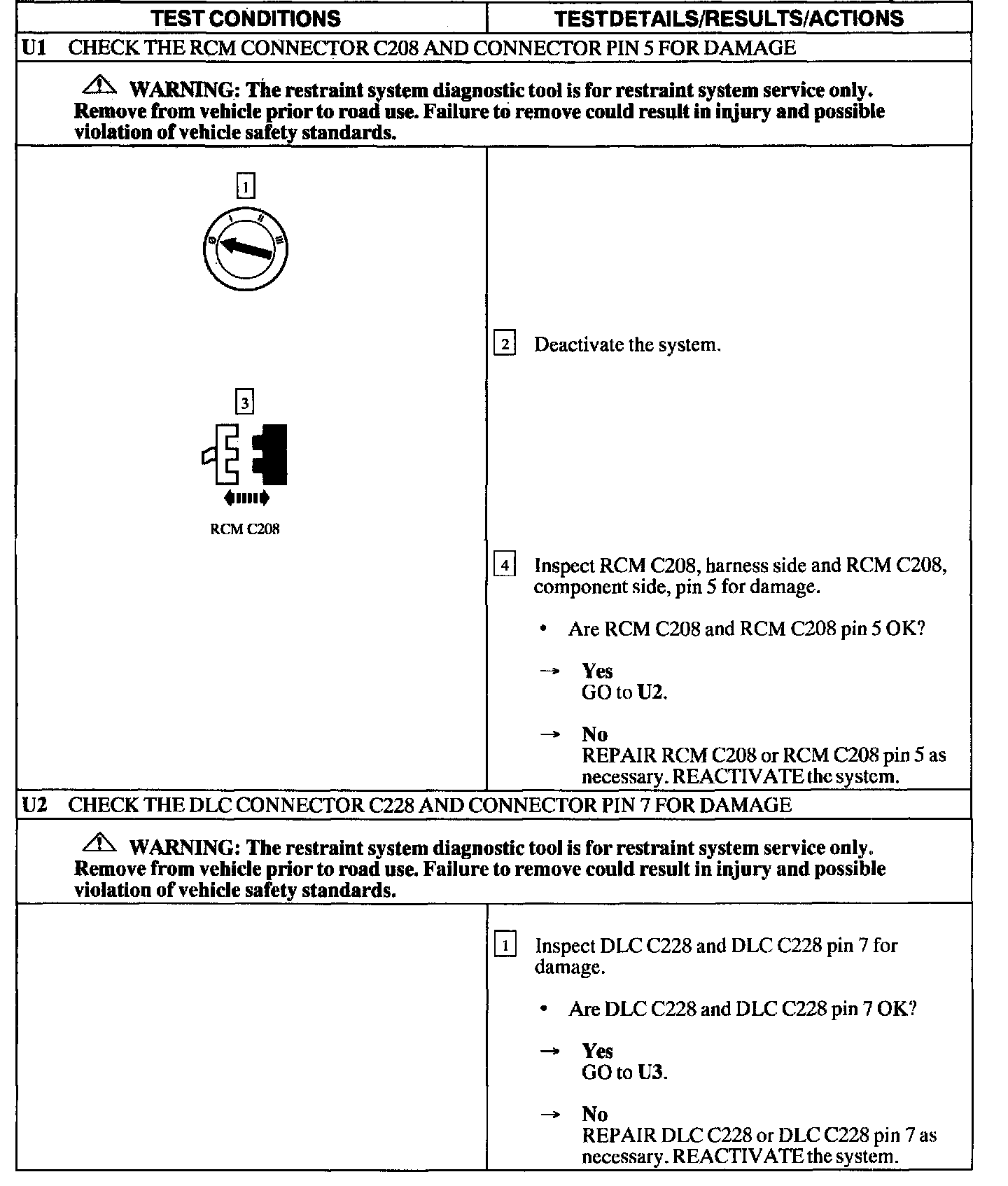 Test U: No Communication With the Restraints Control Module