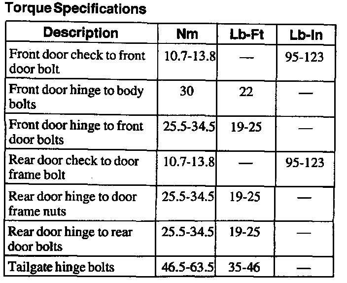 Torque Specifications: