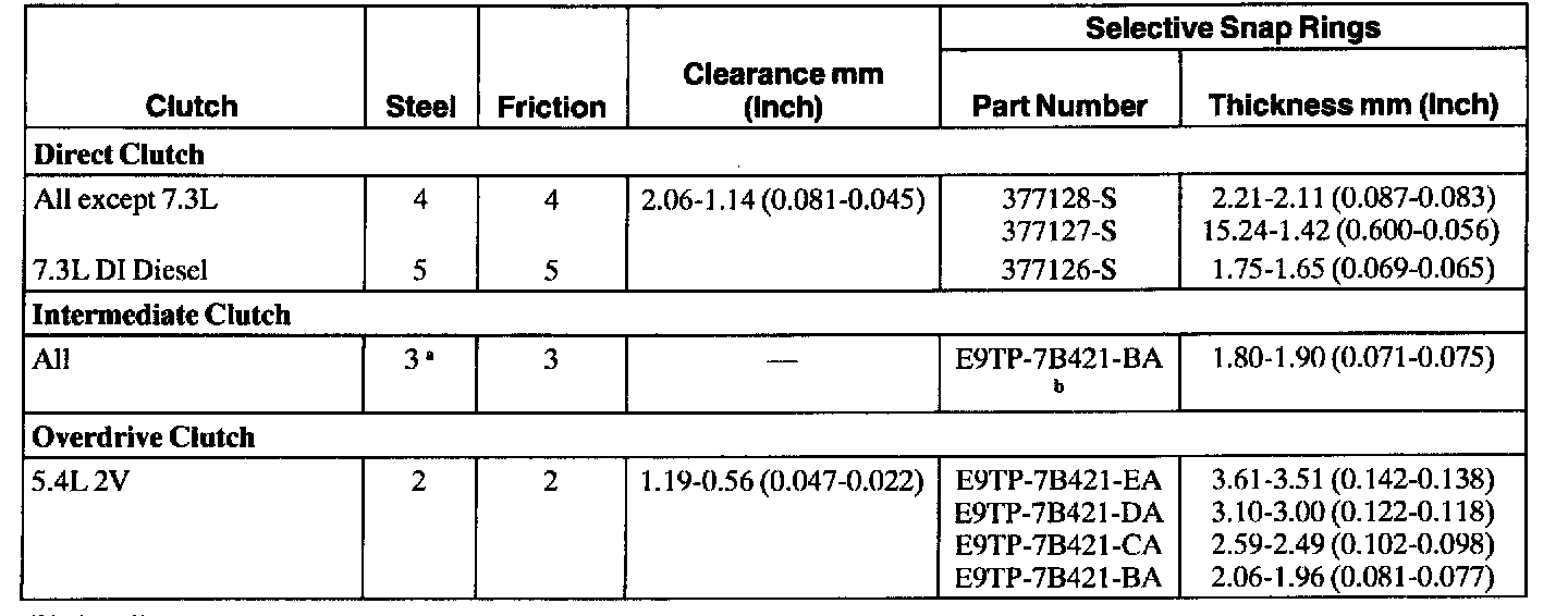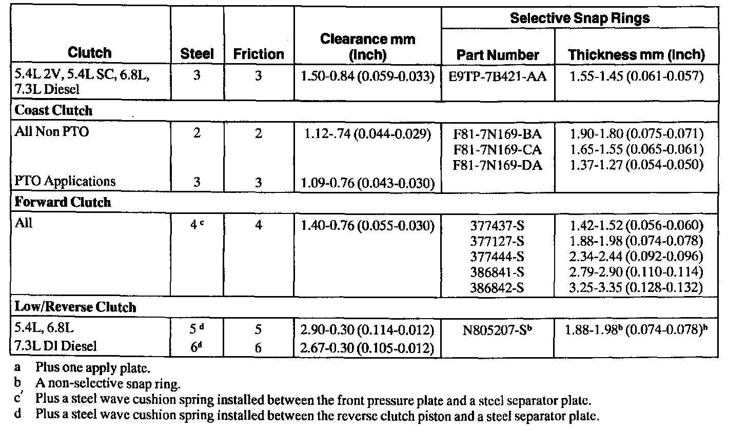 Clutch Plate Usage and Clearance Specifications