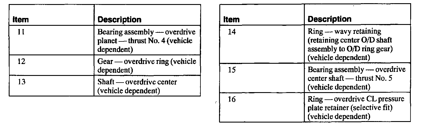 The overdrive clutch is splined between the case and the coast clutch cylinder. The overdrive clutch holds the coast clutch cylinder and, in turn, the overdrive sun gear, to permit the planet assembly to overdrive the ring gear.