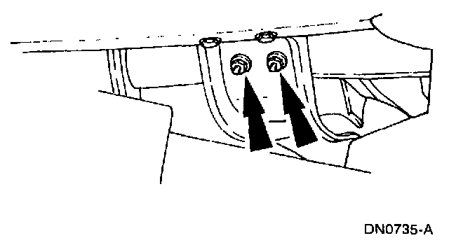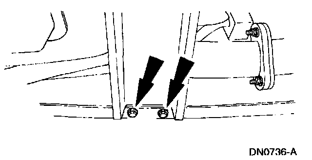8. Remove the transmission support crossmember nuts and bolts (LH side).