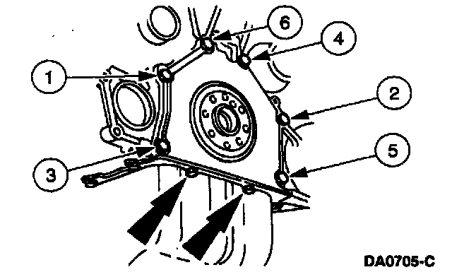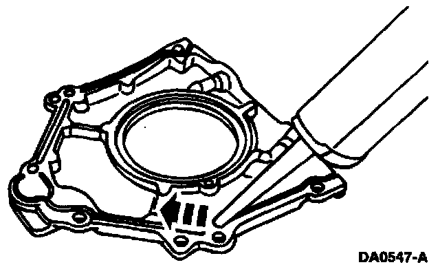 Apply a bead of silicone around the rear oil seal retainer sealing surface.