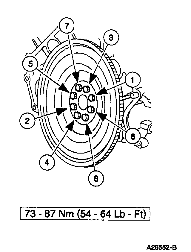 14. Install and tighten the four new nuts retaining the torque converter.
