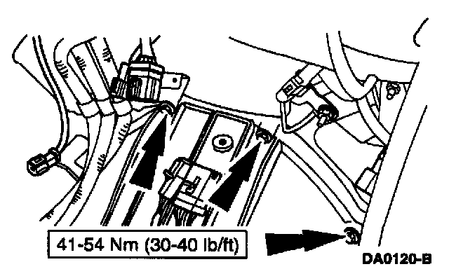 24. Connect the transmission wiring harness and the LH and RH heated exhaust gas oxygen sensor connectors.