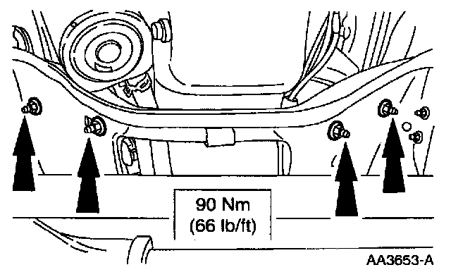 9. Position the engine in the vehicle and remove the Modular Lifting Bar and the jack supporting the transmission.