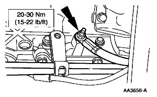23. Install the remaining transmission-to-engine bolts and fuel line bracket.