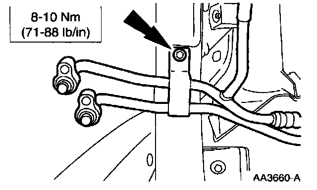 20. Install the transmission cooler line bracket.