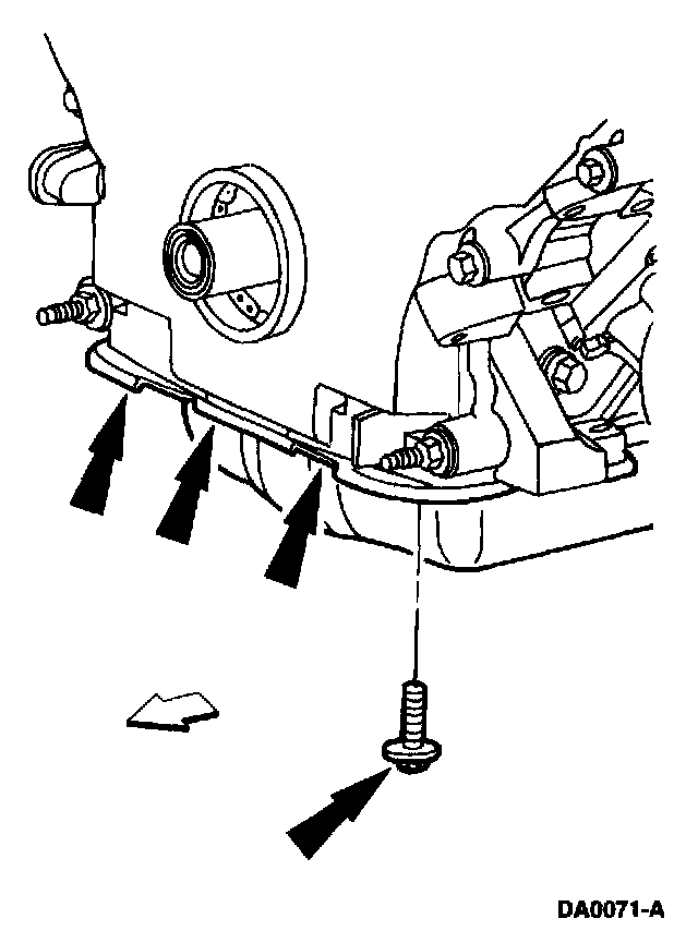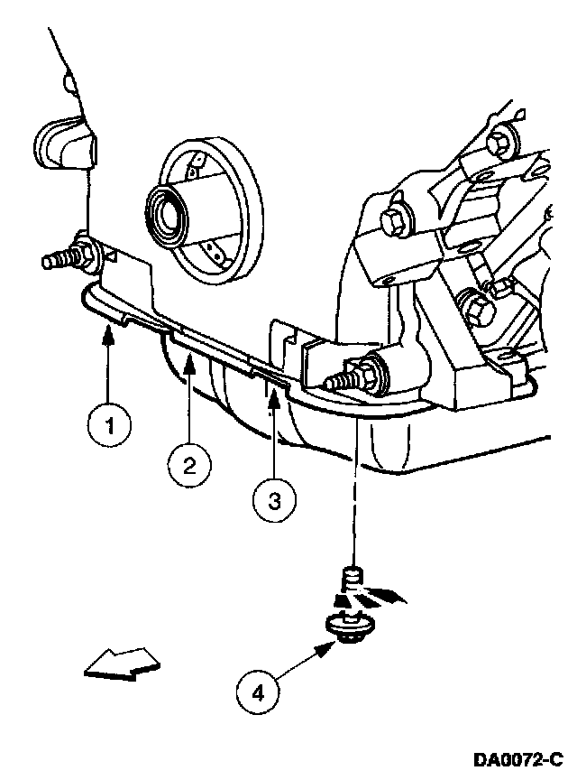10. Remove the four front oil pan bolts.