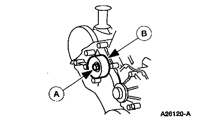 14. Remove the (A) bolt and the (B) belt idler pulley.