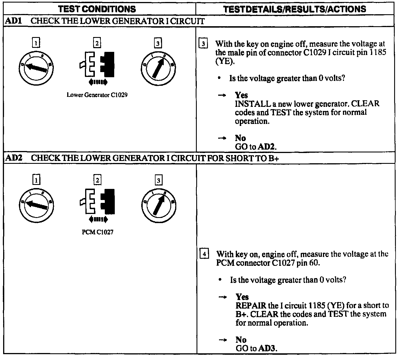 Tests AD: Dual Generator Lower Circuit Fault Detected (P1107)