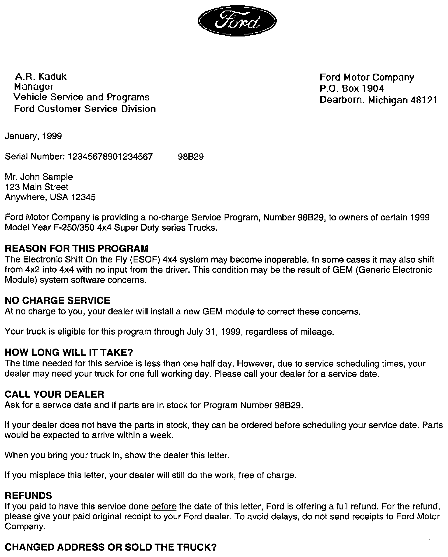 F 250 4WD Super Duty V8-7.3L DSL Turbo VIN F