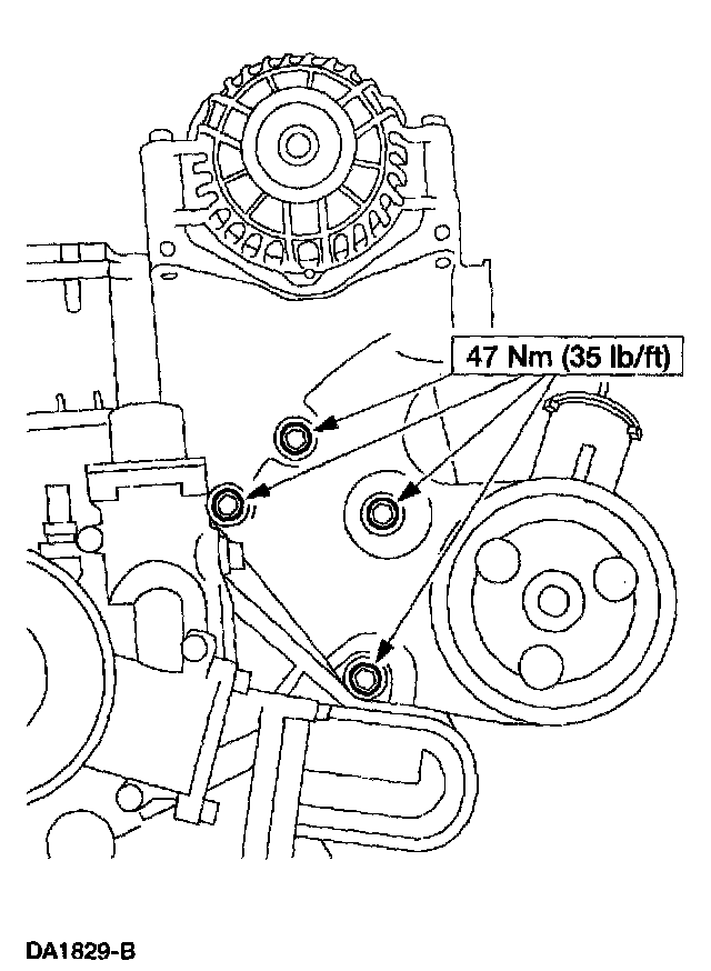 75. Install the generator mounting bracket and the mounting bolts.
