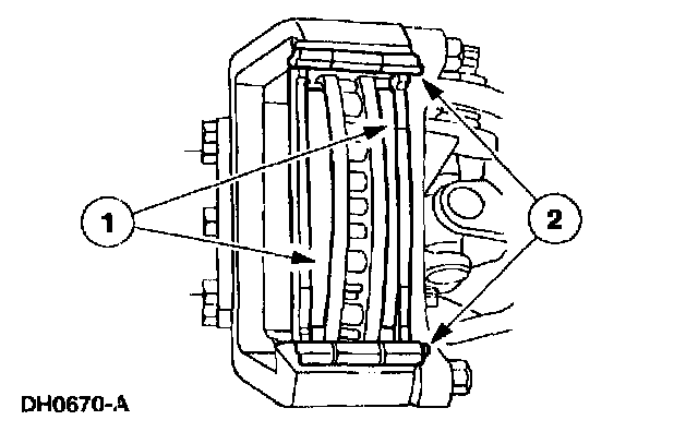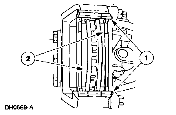 1. CAUTION: Do not allow grease, oil, brake fluid or other contaminants to contact the pad lining material. Do not install contaminated pads.