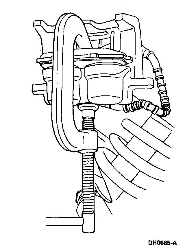4. CAUTION: Use care not to damage the bleeder screw or front disc brake rotor shield.