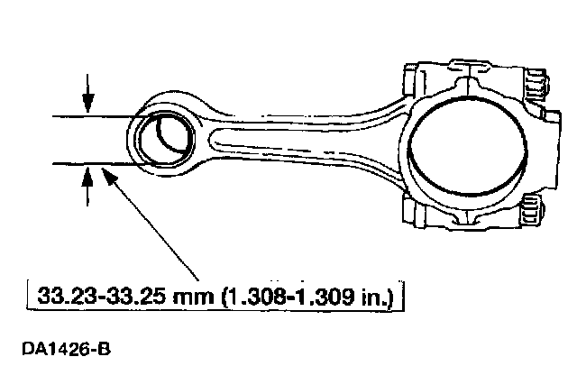 4. If the piston pin bushing has been removed from the connecting rod, measure the inside diameter of the piston pin bushing bore. Install a new connecting rod if the piston pin bushing bore is not within specifications.