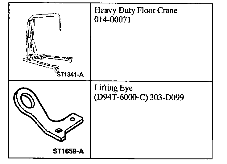 2. Install the Engine Lifting Bracket and the Heavy Duty Floor Crane.