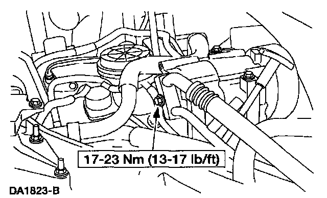 19. Position the fuel line and install the bolt.