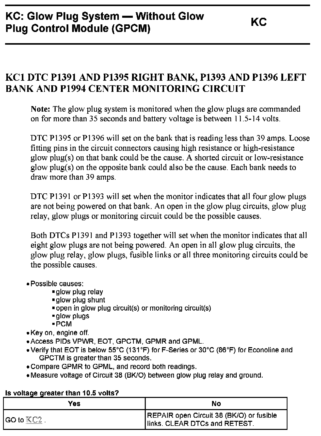 Tests KC: Glow Plug System