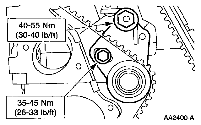 3. Remove the timing belt tensioner.