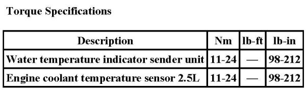 Coolant Temperature Sensor/Switch (For Computer): Specifications