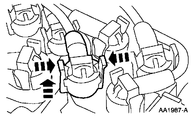 REMOVAL1. Squeeze the locking tabs and remove the spark plug wires from the ignition coils.