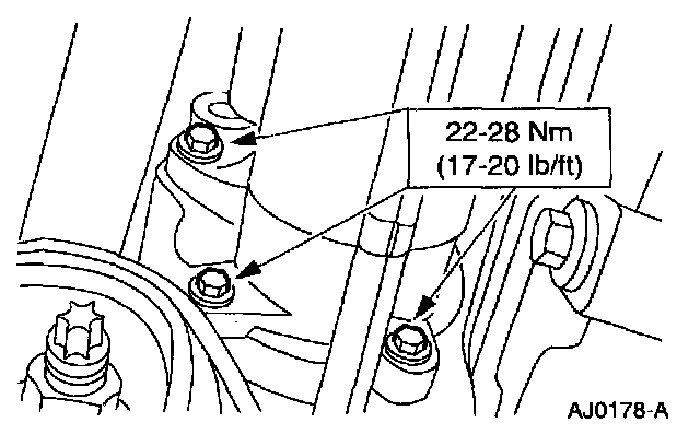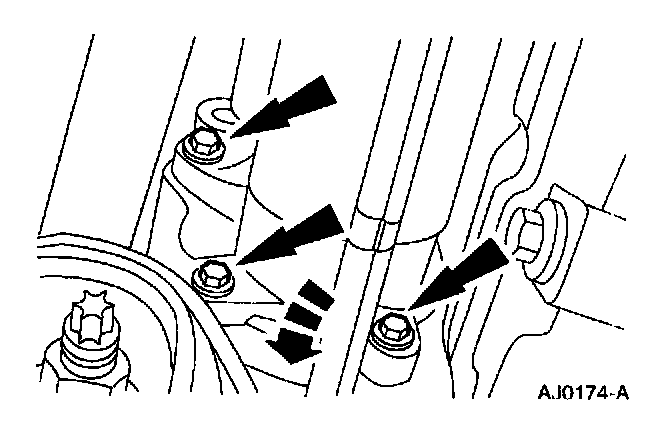 2. Remove the bolts and lower the starter motor.