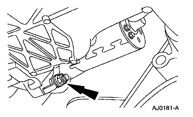 REMOVALWARNING: WHEN REPAIRING STARTER MOTOR OR PERFORMING ANY MAINTENANCE IN THE AREA OF THE STARTER MOTOR, NOTE THE HEAVY GAUGE INPUT LEAD CONNECTED TO THE STARTER SOLENOID IS HOT AT ALL TIMES. MAKE SURE THE PROTECTIVE CAP IS INSTALLED OVER THE TERMINAL AND IS REPLACED AFTER REPAIR.