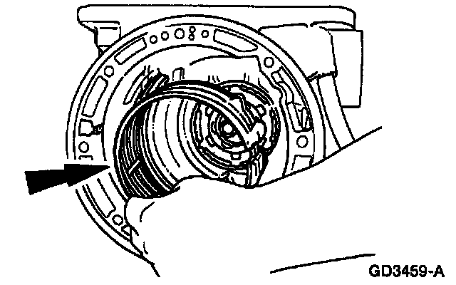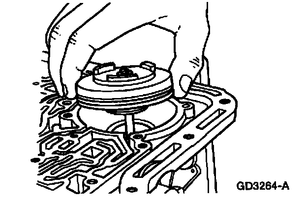 63. CAUTION: Make sure that the pump body is seated against the thrust washer and the front brake and coast clutch drum. The pump body must be below the level of the case gasket surface.