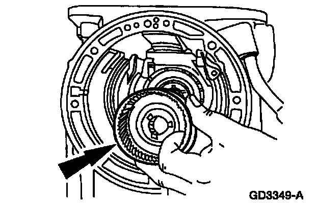 28. CAUTION: The low/reverse brake drum must be pulled forward to install the low/reverse planet retaining ring.