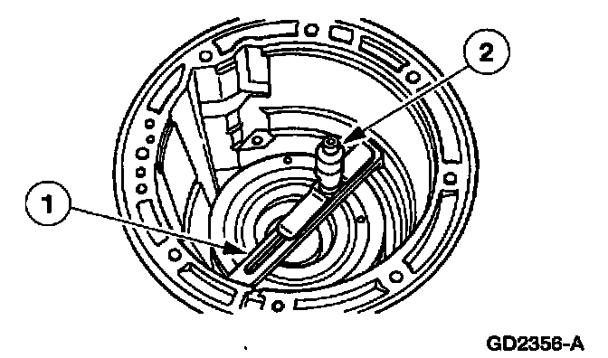 43. Install the intermediate band apply strut on the intermediate servo actuating lever.