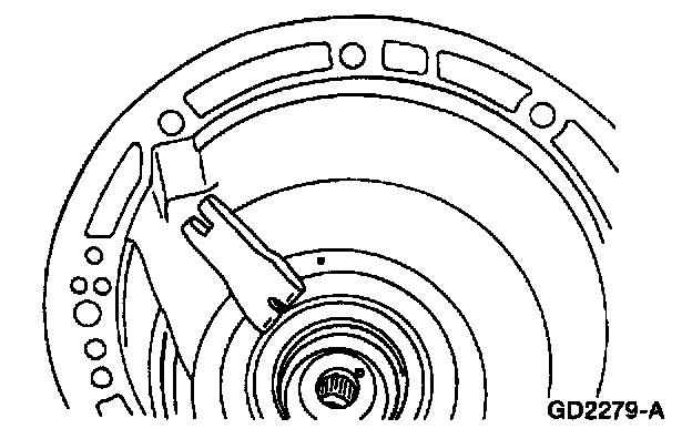 Remove pump and install No. 1 thrust washer onto pump. After installing selected front pump thrust washer No. 1, repeat front end play check. Make sure correct end play, then remove pump for assembly.