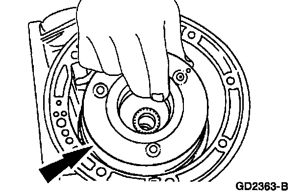 1 Position the center support into the intermediate brake and direct clutch drum.