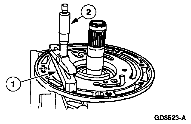 1 Extend the micrometer probe until it makes contact with the center support thrust bearing surface. Record this reading as dimension F.