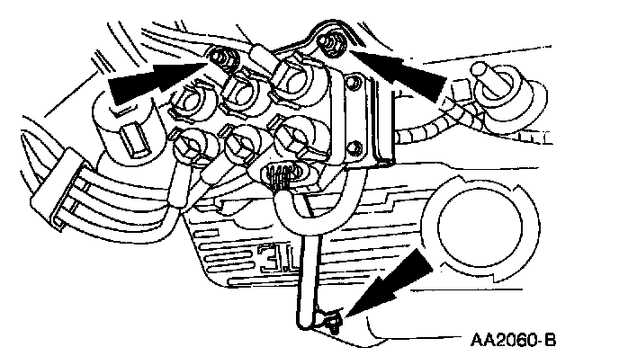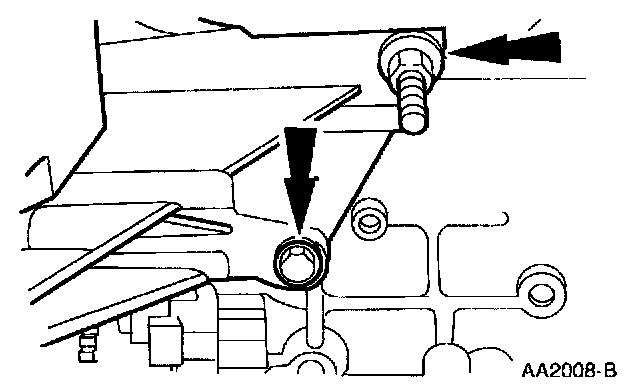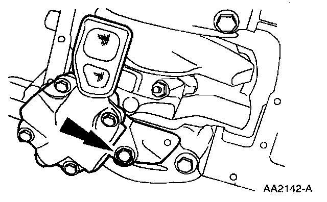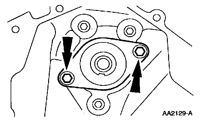 7. Remove the bolts and the A/C compressor mounting bracket.