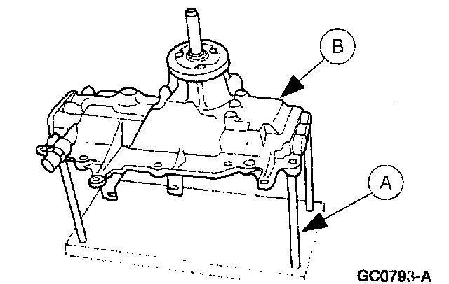 1. Check the contact surface of the (A) shift fork and (B) synchronizer sleeve for wear or damage.