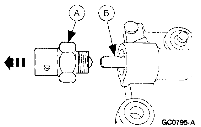 3. Remove the (A) backup lamp switch and the (B) pin.
