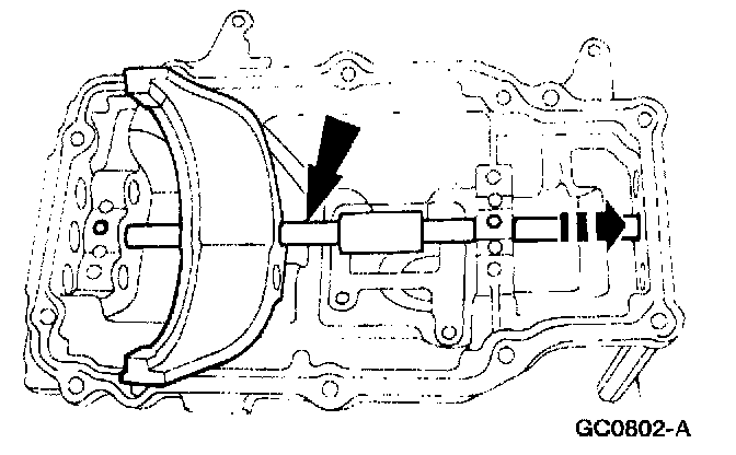 10. Use the spring pin bore to remove the third/fourth shift rail.