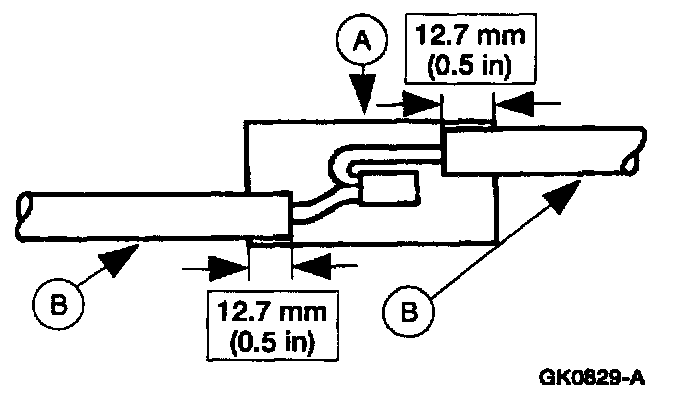 5. Position the (A) heat shrink tube over the (B) wire repair.
