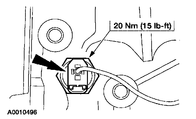 3. Note: Coat the threads of the oil pressure sensor with Pipe Sealant with Teflon D8AZ-19554-A or equivalent meeting Ford specifications WSK-M2G350-A2 and ESR-M18PT-A.