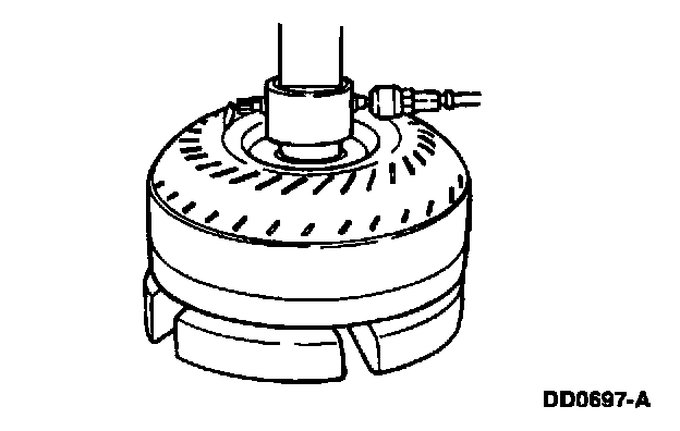 5. With air pressure applied to the valve, inspect for leaks at the converter hub, the seams and the studs. A soap bubble solution can be applied around those areas to aid in the diagnosis. If any leaks are present, replace the converter.