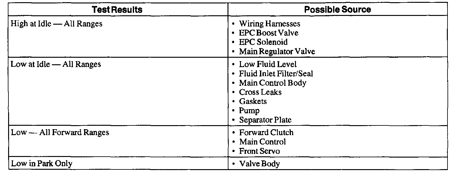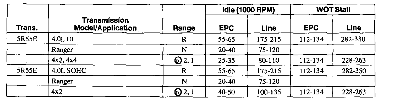 5. Start the engine, increase and maintain 1000 engine rpm and check EPC pressure, see the line pressure chart for specification.