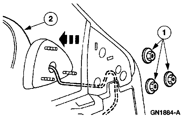 2 Remove the outside rear view mirror.